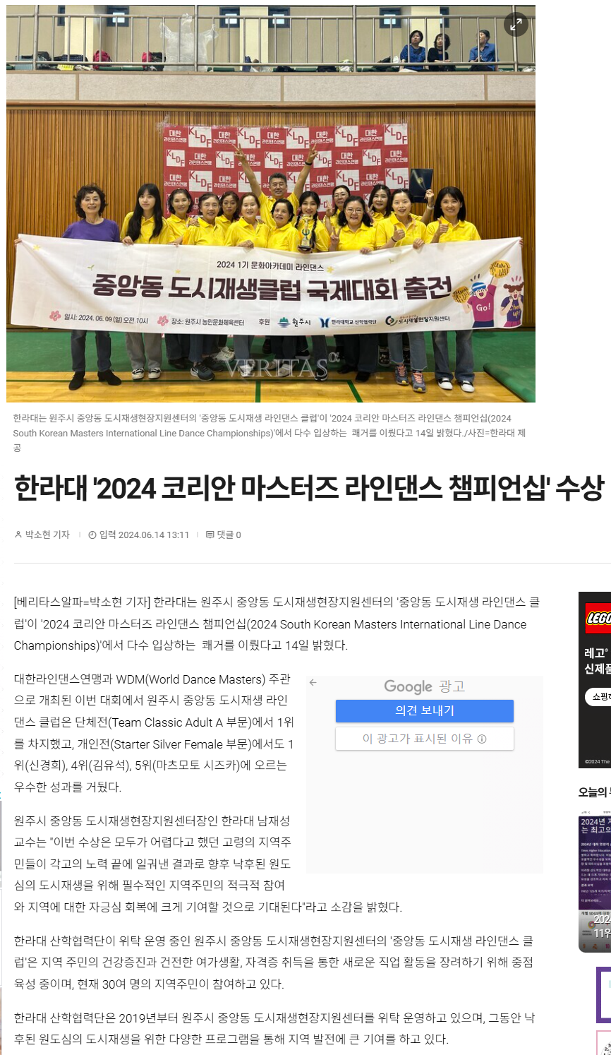 미래라이프 학우들로 구성된 라인댄스 팀이 2024 Korean Masters 라인댄스 대회에서 상을 휩쓸었습니다. 지난 6월8일~9일 원주시 농민문화체육센터에서 개최된 이번 대회에서 박인홍 학우가 Starter Open Male 부문에서 1등을 차지하는 등 총 18명이 수상을 휩쓸었습니다. 입상한 우리 학우들 축하드립니다 ~!!!!!