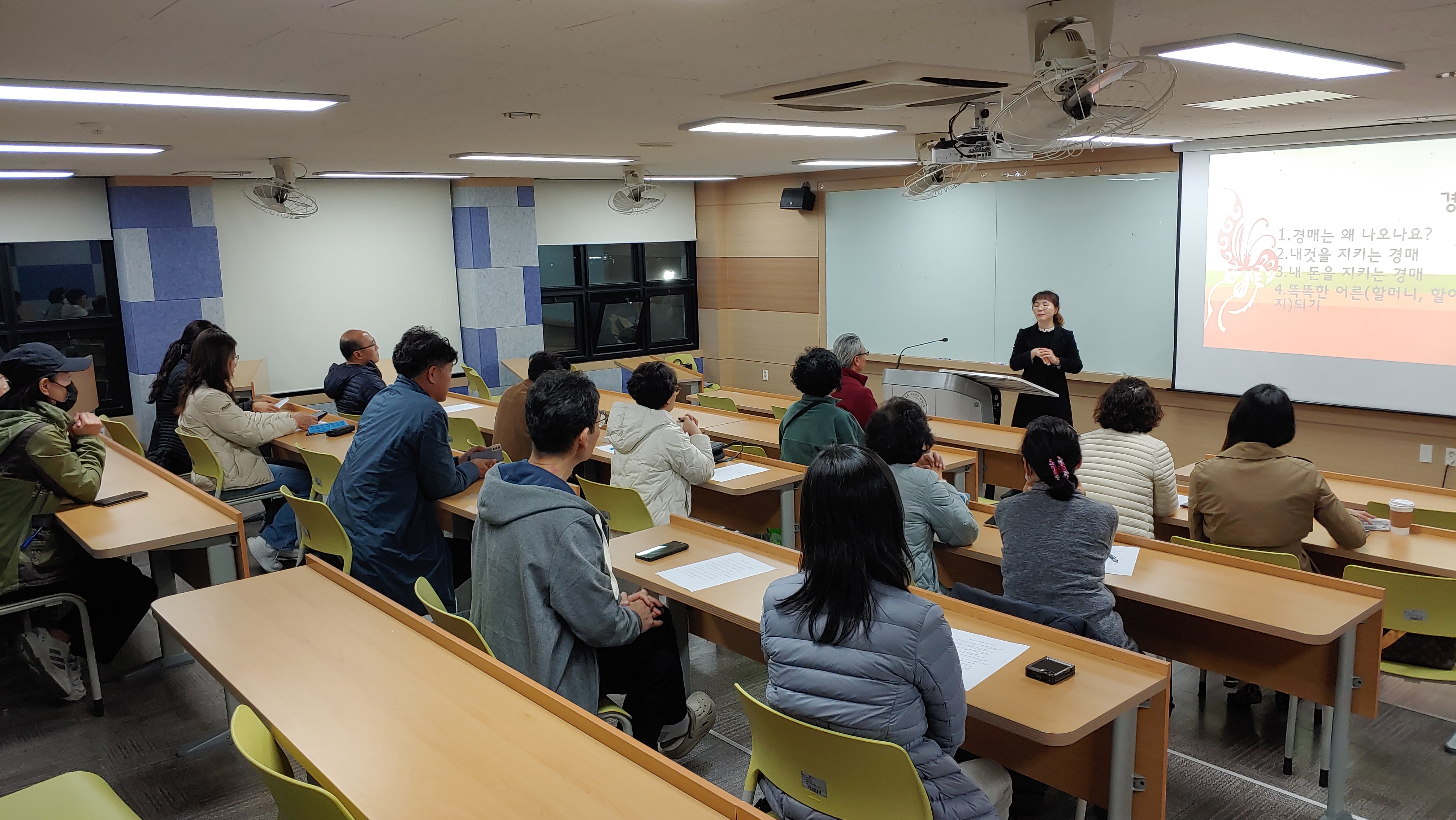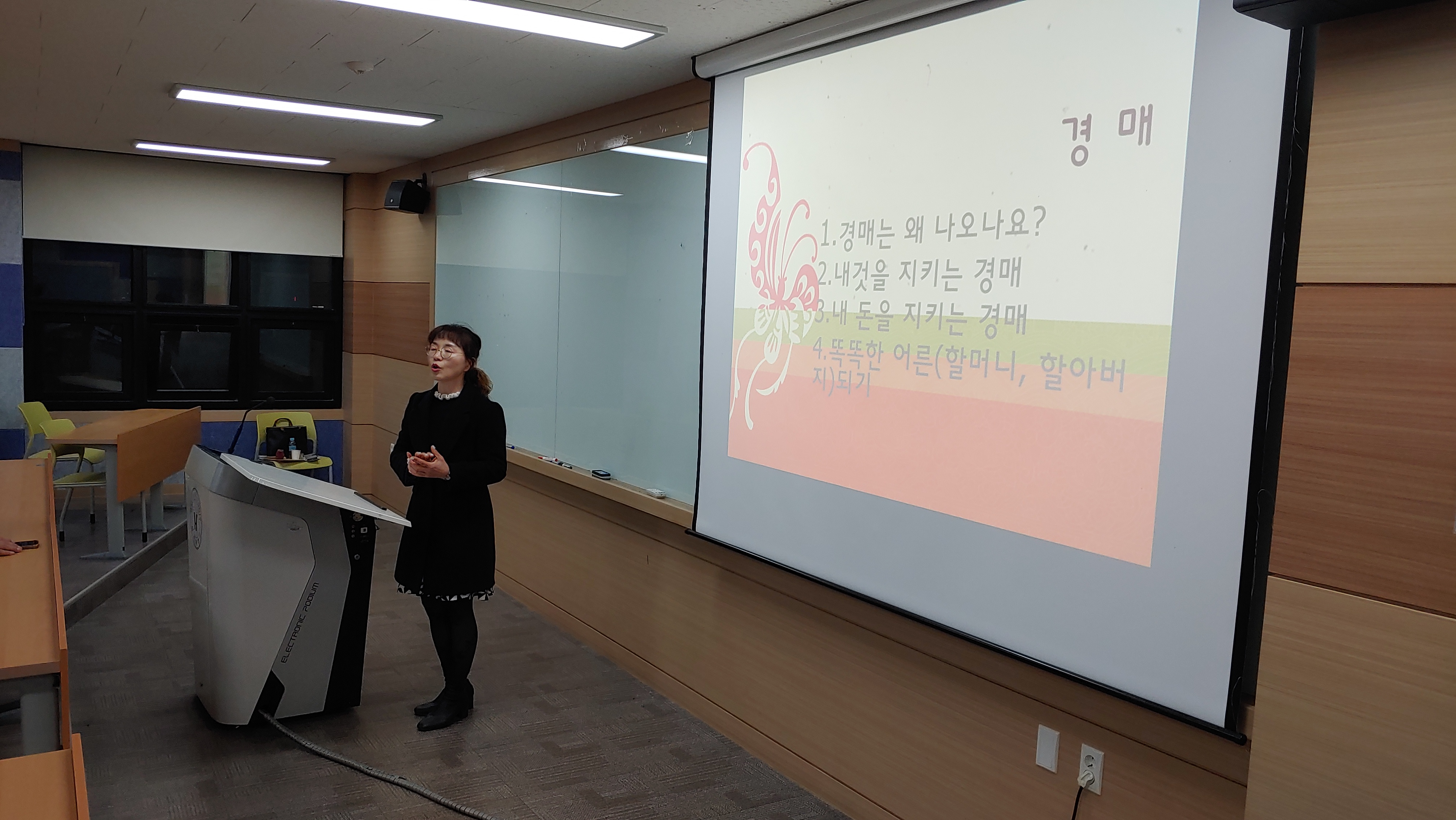 부동산 중개 전문가인 문화예술학과 4학년 윤순희 학우가 미래라이프 학우들을 위해 자산관리 특강을 하였습니다. 지난 11월 12일(화) 오후 6시부터 한라관 C606 강의실에서 진행된 특강에는 많은 학우들이 참여하여 부동산 경매에 대한 새로운 지식을 배웠습니다. 바쁜 시간을 내어 주신 윤순희 학우에게 감사드립니다~~~!!!