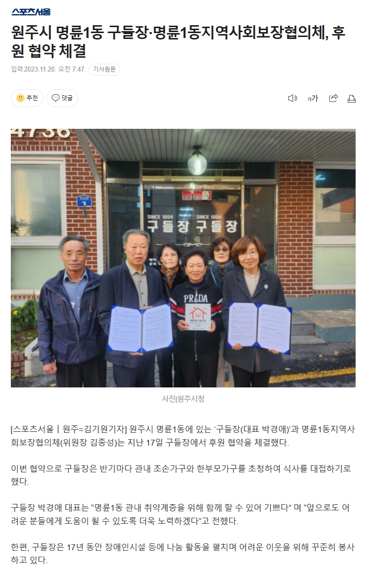 박경애학우의 지역사회 후원