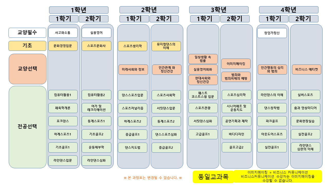 교과과정표 참고 부탁드립니다.