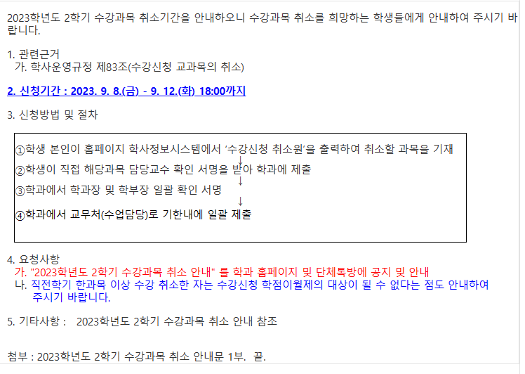 2023-2학기 수강과목 취소 안내
