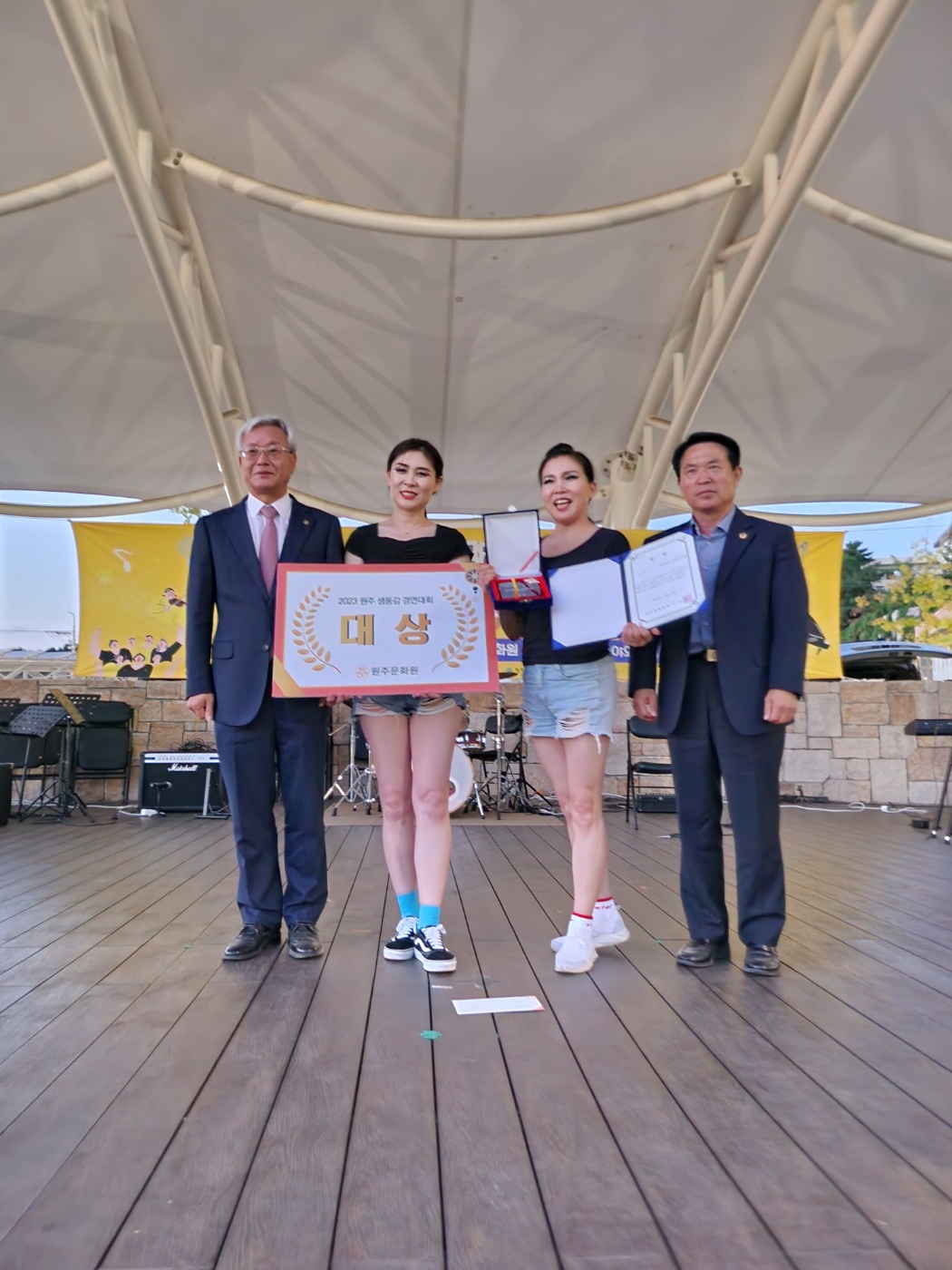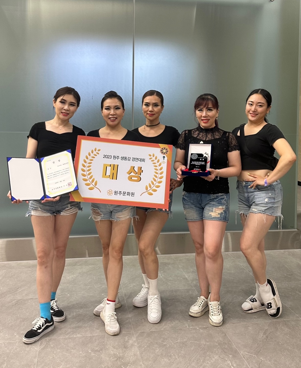 지난 9월9일(토) 원주문화원이 주최한 2023 원주 생동감(생활문화 동아리 감성) 경연대회에서 우리학부의 진은주, 서정미, 강경순, 서희현, 김교정, 선우연 학우로 구성된 라인댄스팀(지도: 안명식교수)이 대상과 함께 상금 150만원을 수상하였습니다. 축하드립니다~~!!!