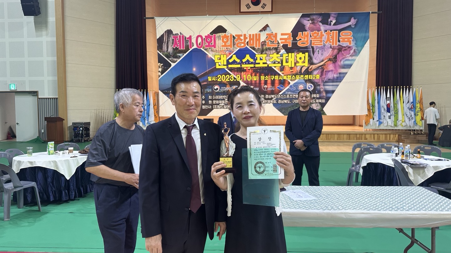 지난 9월10일(일) (사)대한민국댄스스포츠연맹이 주최하고 경상북도댄스스포츠연맹과 구미시체육회가 주관한 제10회 회장배 생활체육 전국 댄스스포츠대회에서 우리학부 라인댄스팀(진은주, 서정미, 서희현, 김교정, 선우연학우)이 전체 대상을, 미래라이프팀(윤순희, 신성복, 안상순, 민미식, 피정미, 원윤자, 이경숙, 김종강학우)가 최우수상을 수상하였습니다. 본 대회는 경상북도 구미시 복합스포츠센터에서 진행되었으며, 전국에서 800여명의 선수가 모여 치열하게 기량을 겨루었습니다. 지도해 주신 안명식교수님과 함께 축하드립니다~~~!!!!! |