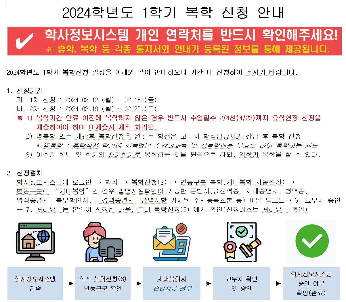 2024학년도 1학기 복학안내