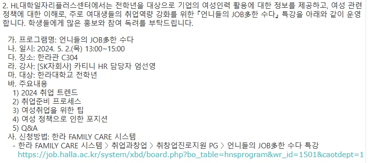 언니들의 JOB多한 수다 특강 안내