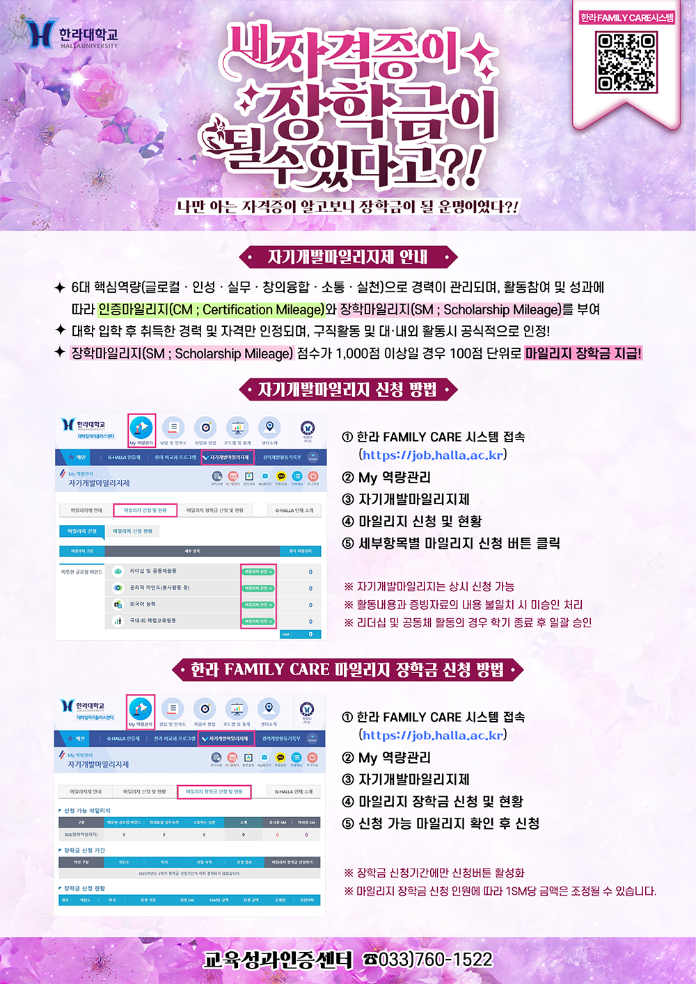 2024-2학기 한라 FAMILY CARE 마일리지 장학금 신청안내