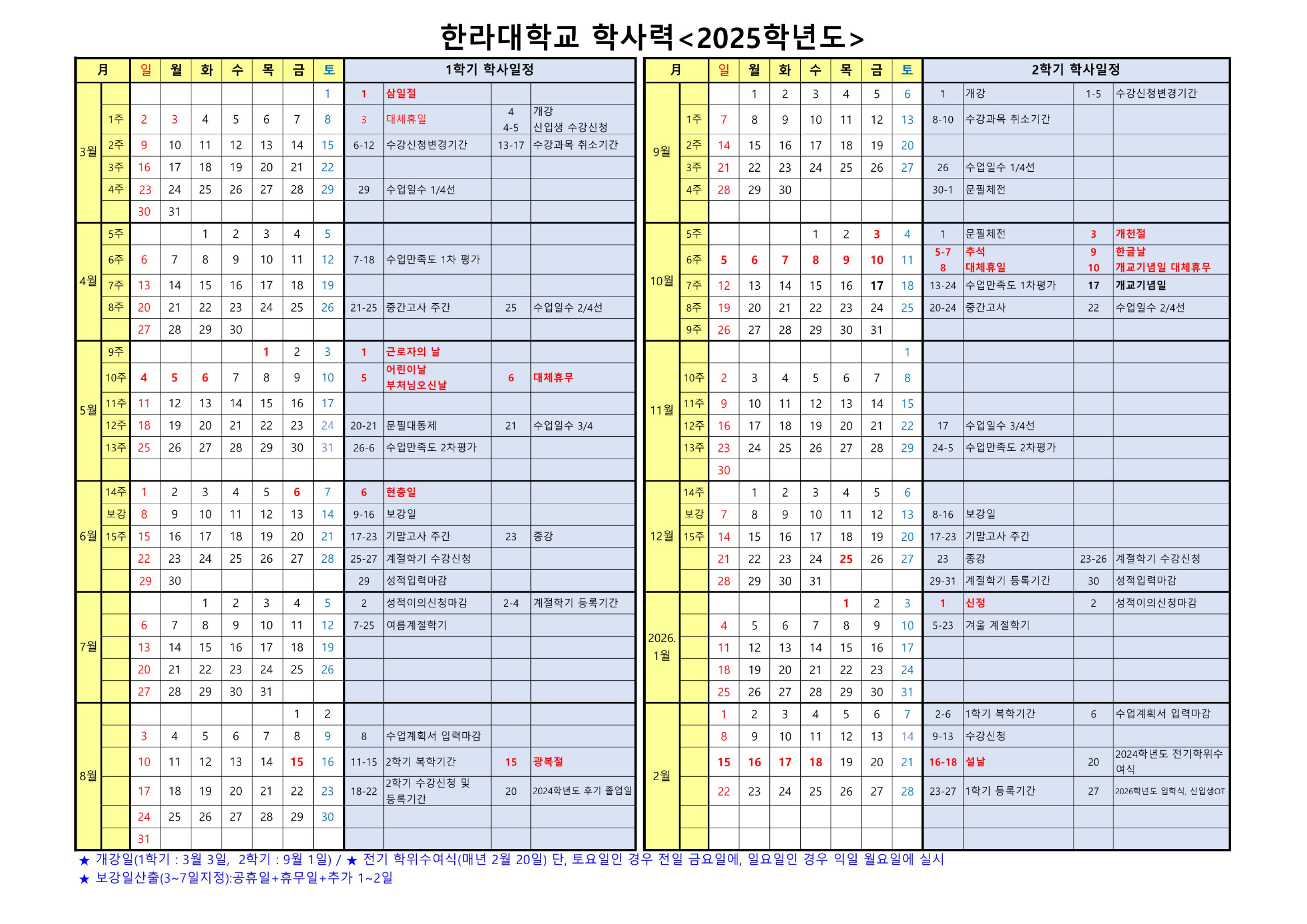 2025학년도 학사력