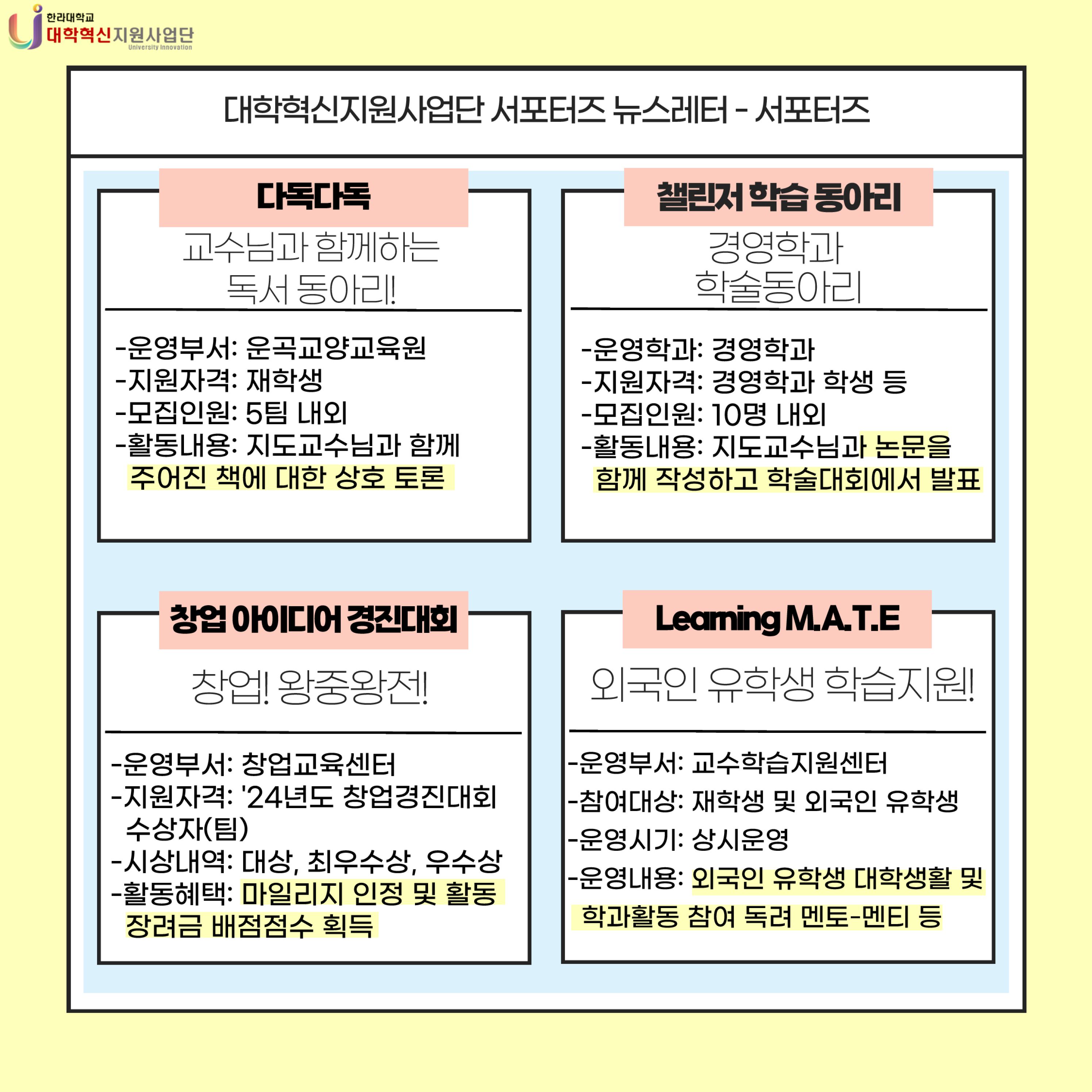 2024년도 대학혁신지원사업단 학생서포터즈 4분기 뉴스레터-1