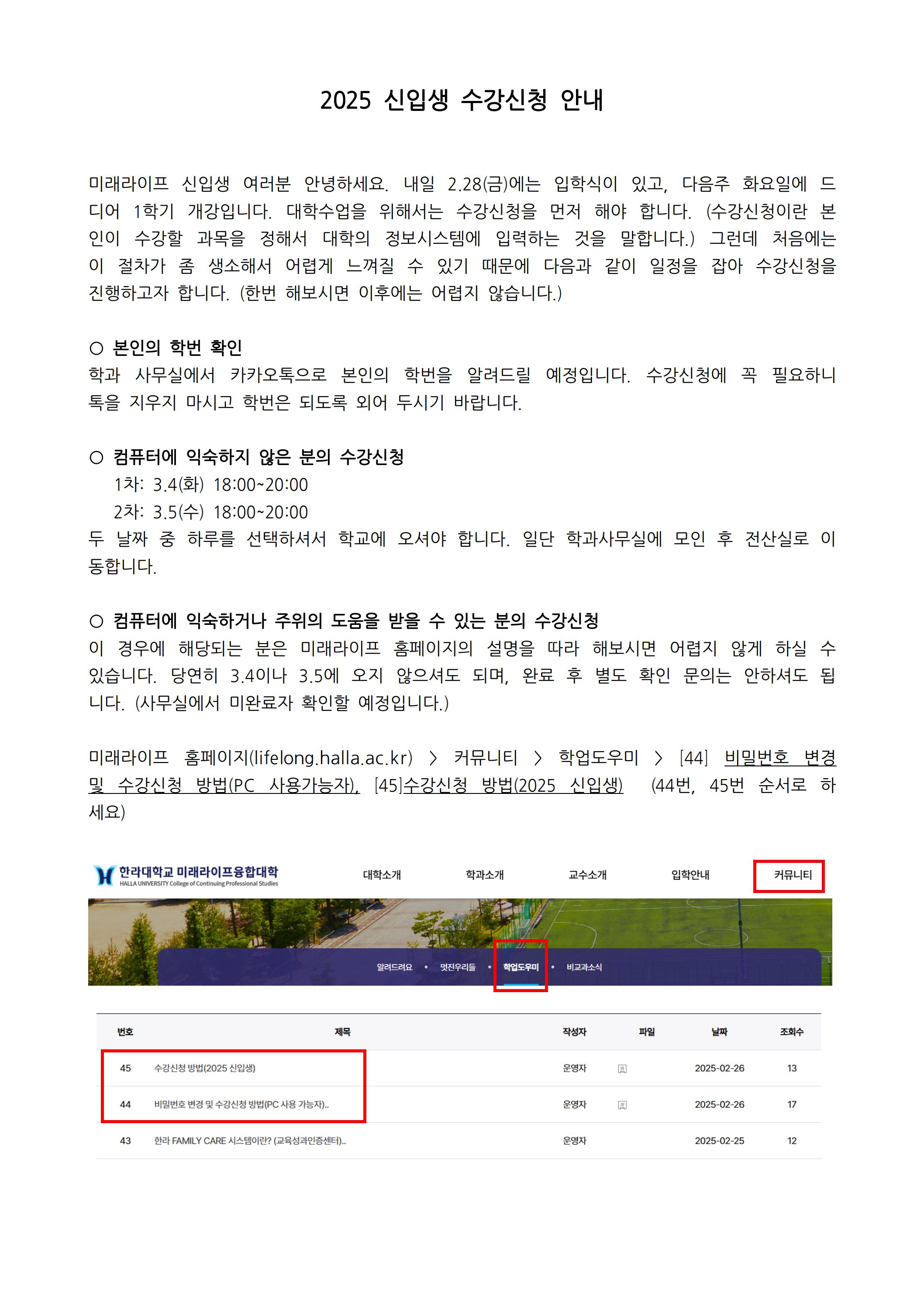 2025 신입생 수강신청 안내