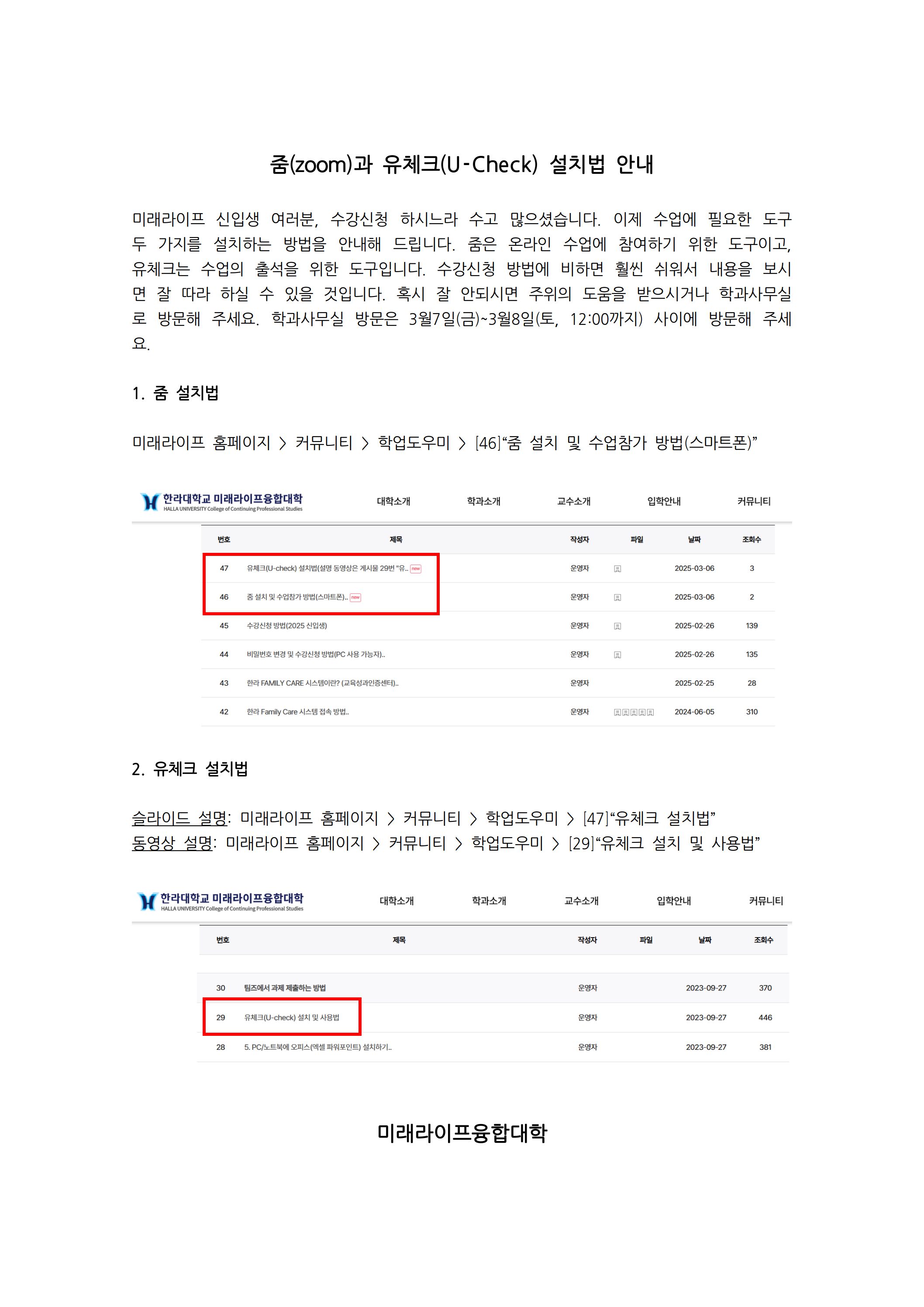 줌(zoom)과 유체크 설치법(2025 신입생)