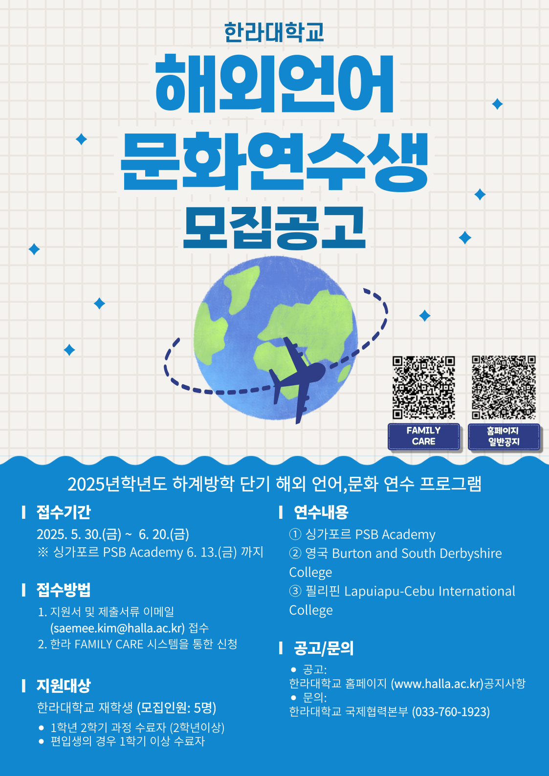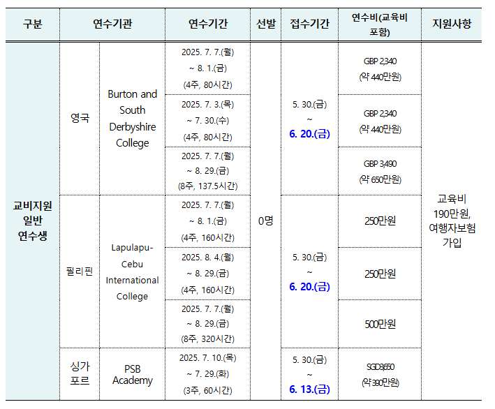 2025학년도 하계방학 단기 해외 언어, 문화 연수 프로그램 참가자 모집안내