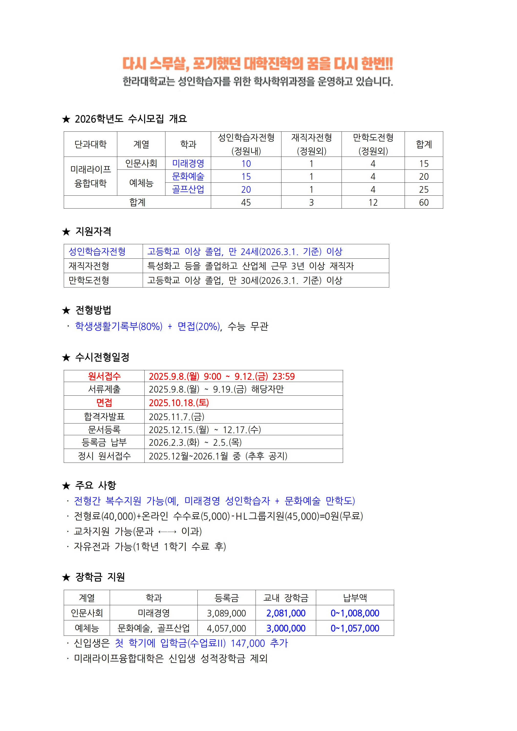 2026학년도 미래라이프융합대학 신입생 모집(수시)