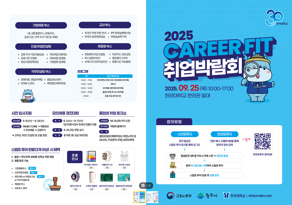 교수학습지원센터 2025학년도 9월 학습지원 프로그램(비교과) 일정 안내
