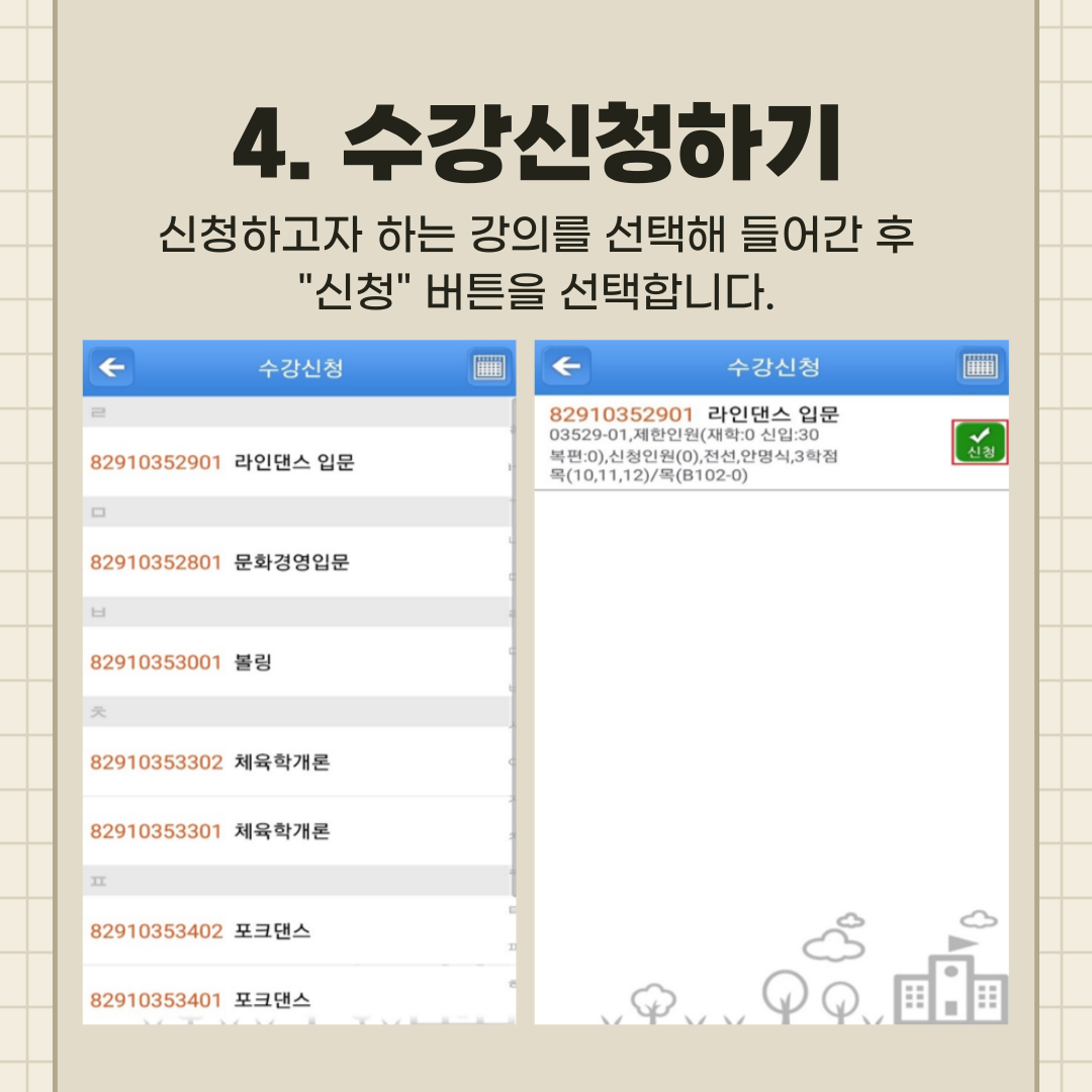 수강신청 매뉴얼 - 모바일